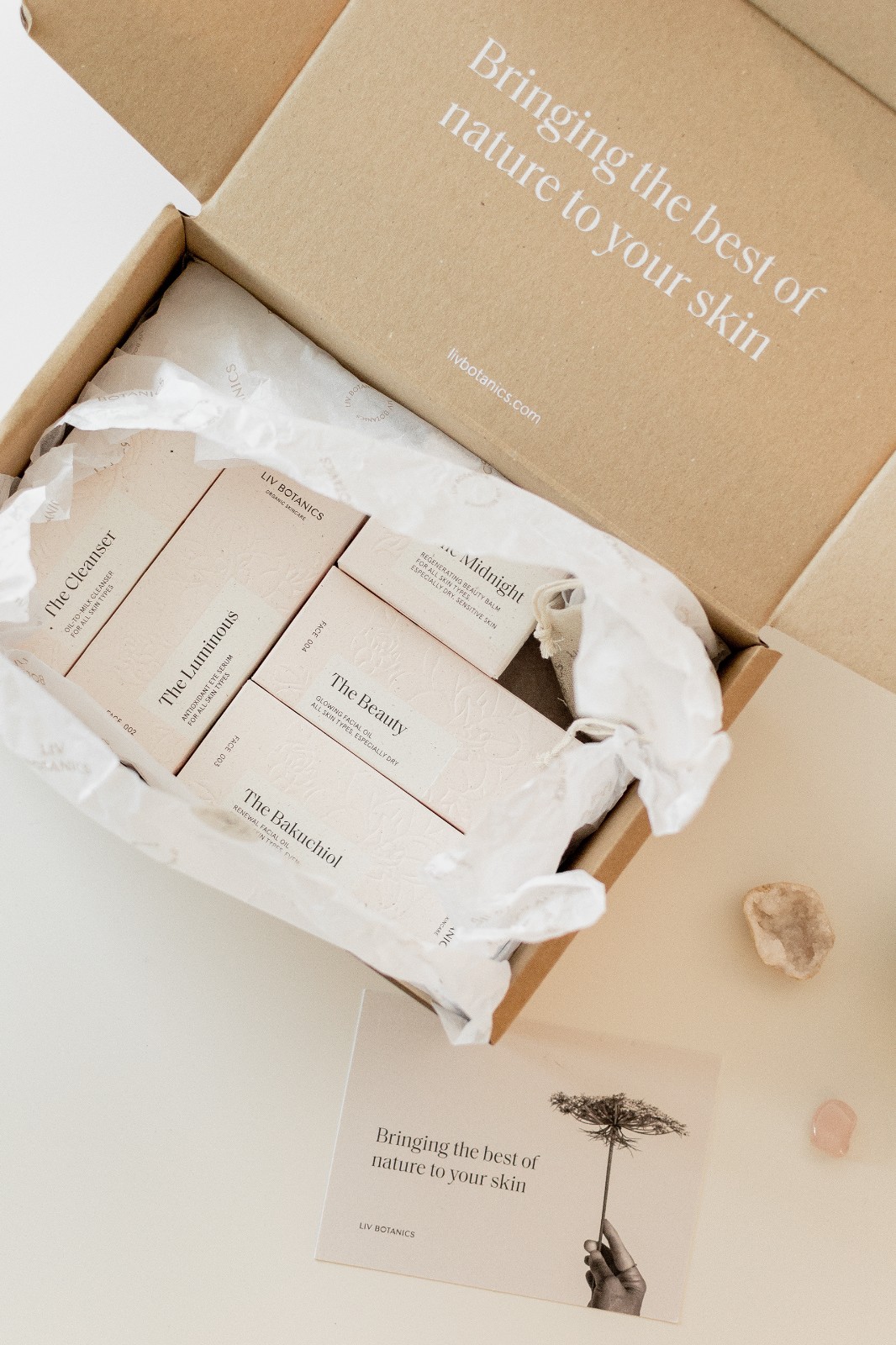 標簽:產(chǎn)品照片 LIV Botanics Studio 包裝設(shè)計 可持續(xù)材料 植物護膚品 100%可回收包裝紙 環(huán)保紙包裝 視覺形象 植物圖畫 拆箱體驗 美容品牌 品牌標識 LIV GIADA 包裝 瓶子標簽 植物油墨印刷 品牌產(chǎn)品包裝設(shè)計公司