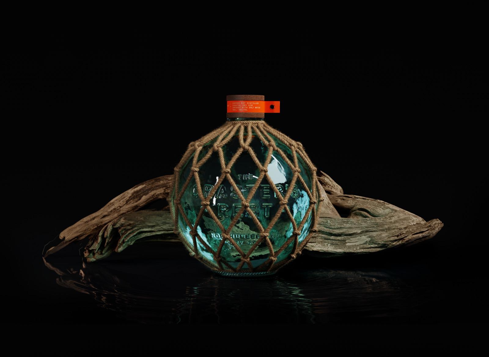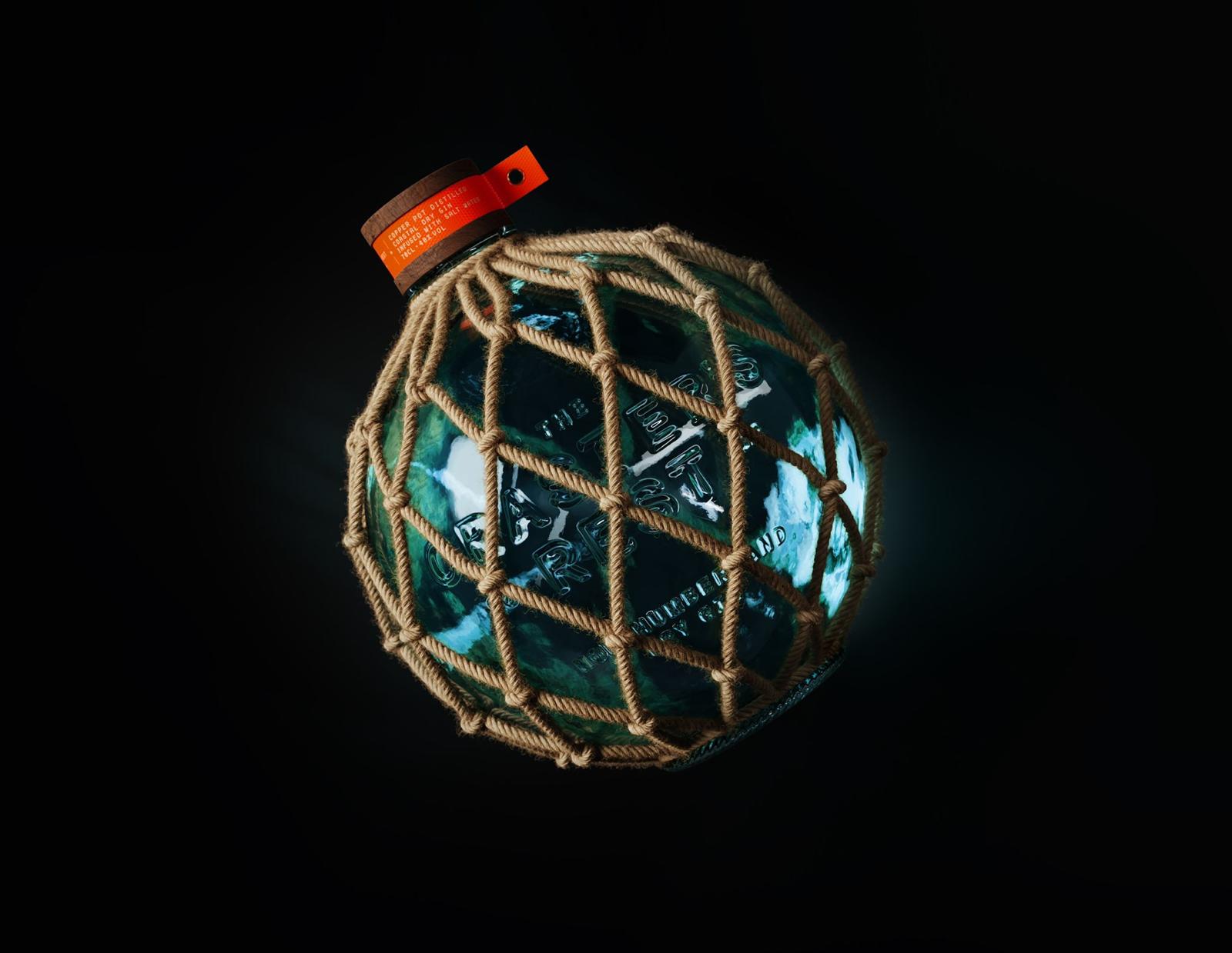 Studio Unbound的靈感來自20世紀(jì)初使用的玻璃浮標(biāo),遠(yuǎn)早于現(xiàn)代塑料浮標(biāo)的發(fā)明。這些玻璃浮標(biāo)被縫在漁民的魚線上,以使?jié)O網(wǎng)漂浮在海洋中,并用繩子包裹起來,以防受到撞擊。在玻璃表面上大量壓印字體,使瓶子盡可能保持原始形狀和結(jié)構(gòu)的真實(shí)性,以及從一段時(shí)間以來與包裝相關(guān)的常見飾面。采用一種老式的裝瓶技術(shù),以保持沉重的打結(jié)繩索包裹的浮標(biāo)的原始美感,這在貨架上創(chuàng)造了一種獨(dú)特的美感。瓶子的玻璃呈藍(lán)綠色,吹出時(shí)模仿海洋深處。Studio Unbound選擇了一頂風(fēng)化的浮木帽子,上面刻著一個(gè)傳統(tǒng)的水手指南針,以確保漁民總是能回家。深嵌在瓶蓋中的還有一層厚厚的高亮度乙烯基,以一件漁民外套為靈感,用銅鉚釘完成。整體結(jié)果是一個(gè)引人注目的瓶子設(shè)計(jì),是現(xiàn)代和傳統(tǒng)的完美融合,以及在其城鎮(zhèn)的歷史浸透。