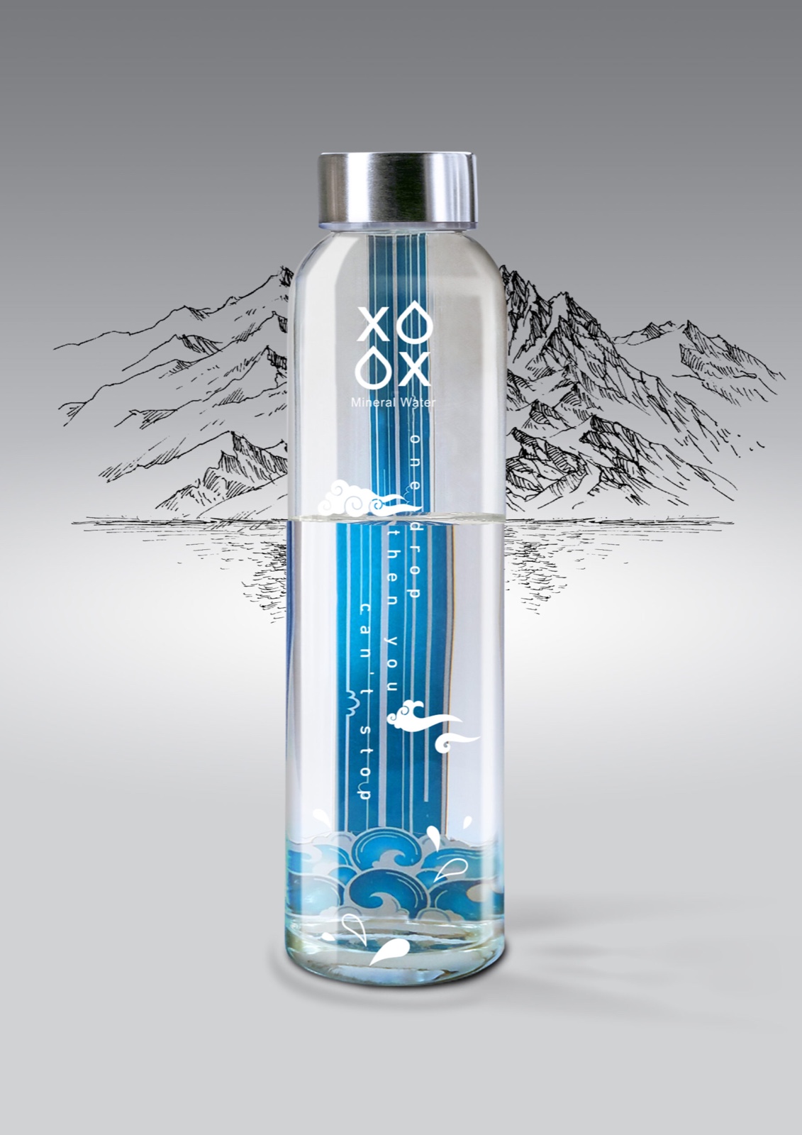 包裝設(shè)計(jì)師作者認(rèn)為礦泉水的品牌名為XO,通過(guò)將形式O轉(zhuǎn)換為水滴,X表示沒(méi)有水,以及XO的懷舊游戲,這兩個(gè)選項(xiàng)都是這個(gè)標(biāo)志的贏家,為給觀眾提供了選擇哪條道路的選項(xiàng)?. 為了設(shè)計(jì)包裝,水包裝設(shè)計(jì)師以簡(jiǎn)化的方式設(shè)計(jì)了一個(gè)靈感來(lái)自伊朗微型畫(huà)的瀑布,它被貼在玻璃背面作為雙面標(biāo)簽。瓶裝水的豐滿度以及水的折射對(duì)瀑布圖像的影響使瀑布變得越來(lái)越大、越來(lái)越寬。一起喝水會(huì)使瀑布變得更窄,水也更少。為了設(shè)計(jì)包裝,我以簡(jiǎn)化的方式設(shè)計(jì)了一個(gè)靈感來(lái)自伊朗微型畫(huà)的瀑布,它被貼在玻璃背面作為雙面標(biāo)簽。水的豐滿度和水的折射對(duì)瀑布圖像的影響使瀑布變得更大、更寬。每喝一杯,瀑布就會(huì)變得更窄,水也更少?!耙坏?,你就停不下來(lái)”的口號(hào)既強(qiáng)調(diào)了XO水的適口性,也強(qiáng)調(diào)了對(duì)這一重要儲(chǔ)備的濫用,這導(dǎo)致了一場(chǎng)環(huán)境災(zāi)難。將微型云朵放置在玻璃上,創(chuàng)造了一個(gè)帶有瀑布的三維空間。