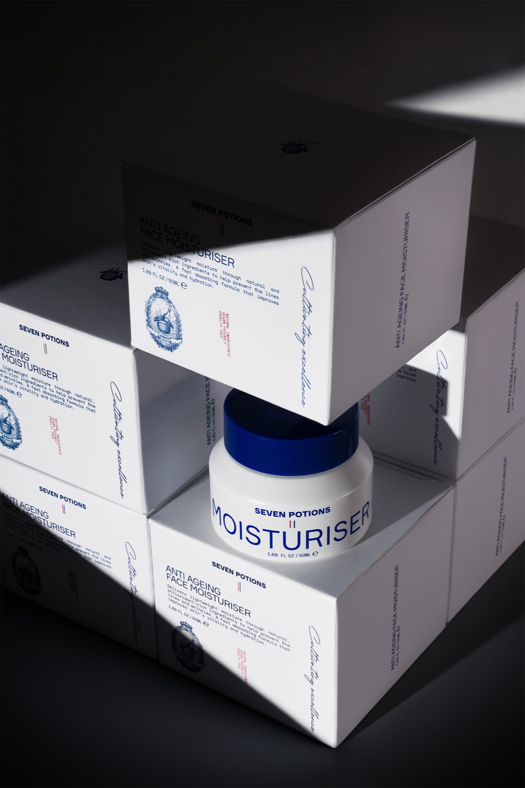 Seven Potions是一個總部位于倫敦的品牌,為現(xiàn)代紳士提供美容產品。當包裝設計師在設計他們的視覺語言和包裝時,努力追求真實性和專業(yè)性。品牌設計師設計了一個標志,散發(fā)出該品牌獨特的故事,抓住了古典與現(xiàn)代之間的平衡。該符號的靈感來源于定義英國歷史的標志,而版式則與現(xiàn)代保持聯(lián)系。