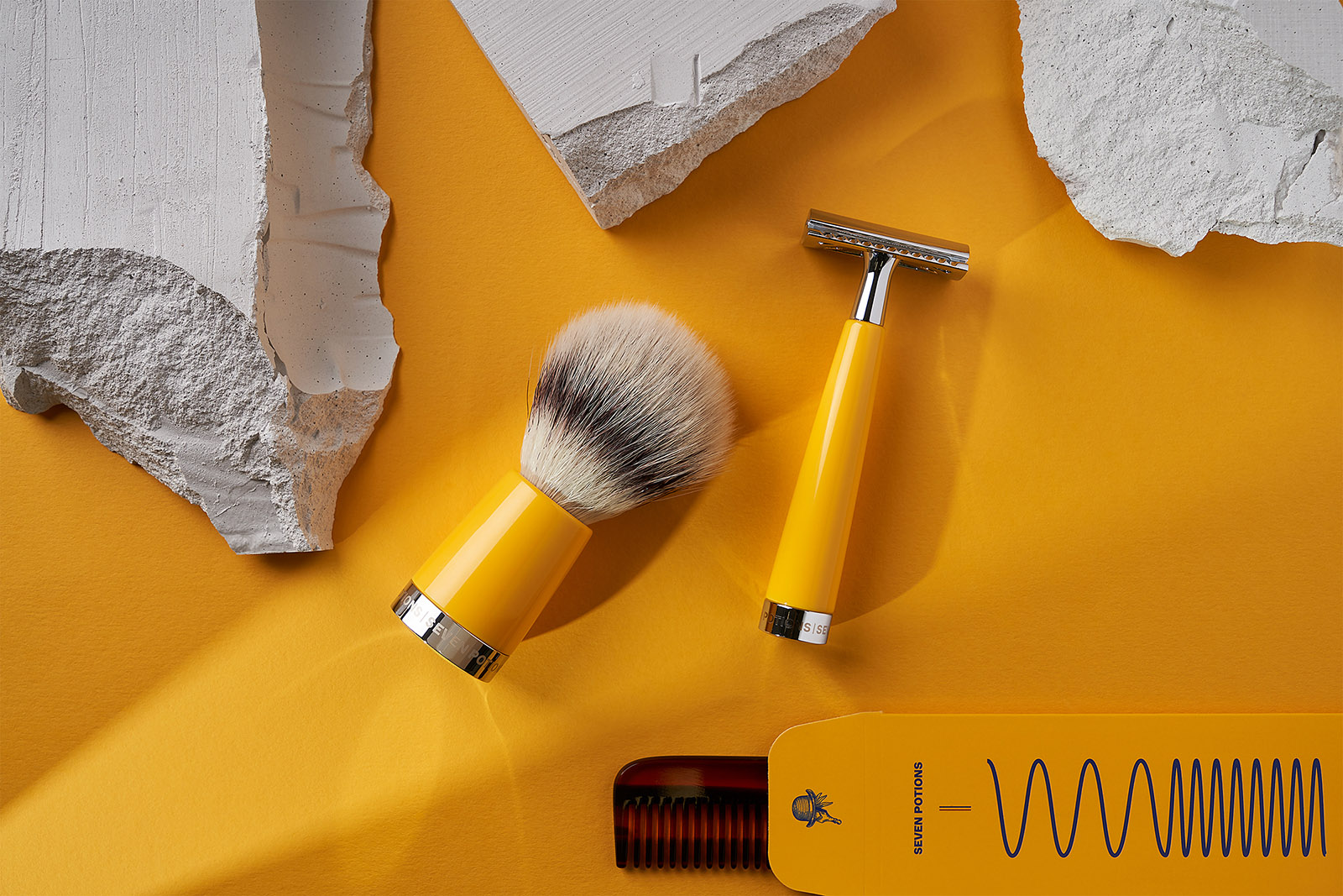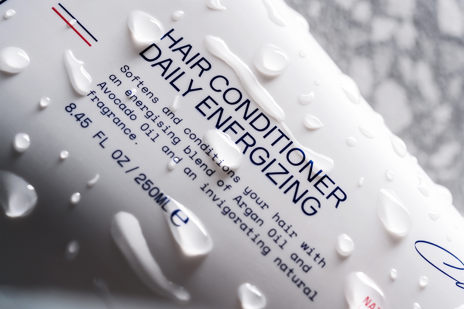 創(chuàng)作團隊開發(fā)了一種包裝系統(tǒng),使容器具有內聚特性,提供強大而獨特的外觀和感覺,同時通過開發(fā)的顏色編碼,可以成功地適應該品牌提供的不同產品線。黃色是核心品牌顏色,樂觀地主導著胡須護理產品的分配器;灰色代表頭發(fā)系列,純白代表護膚品。作為視覺系統(tǒng)開發(fā)的一部分,每個容器的手寫版式上都有“培養(yǎng)卓越”這一短語,而紅藍垂直線則是指標志性的英國顏色,確認了該品牌的倫敦光環(huán)。