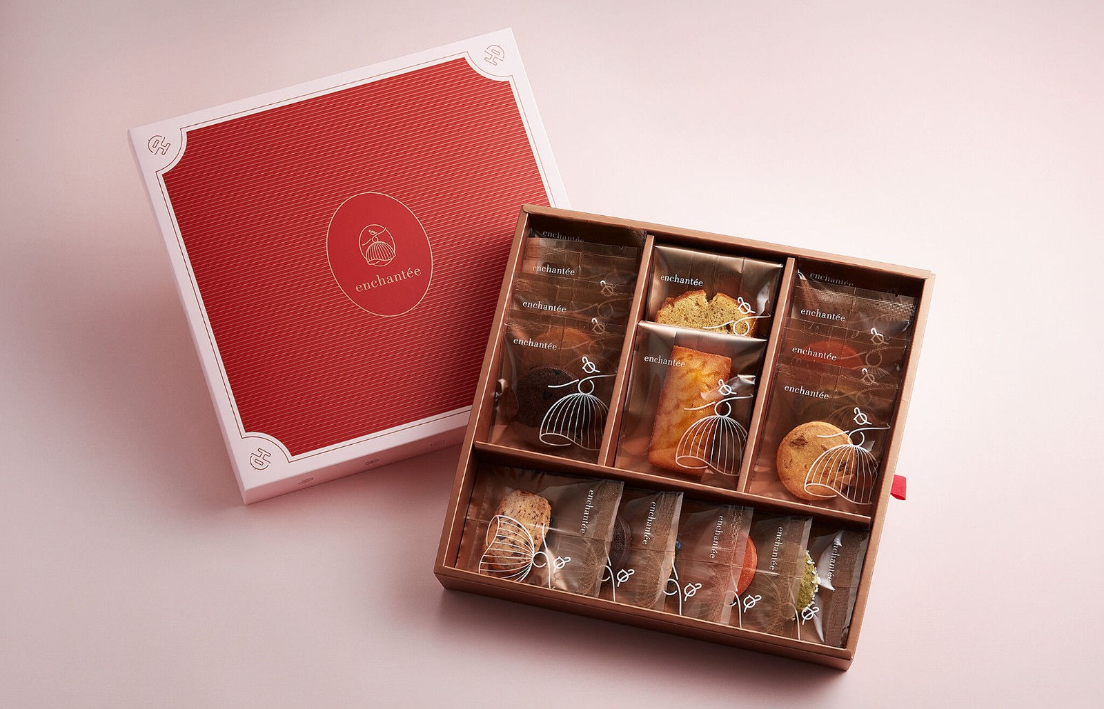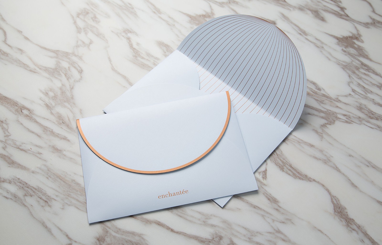 Enchantée是一個新的手工法國甜點品牌,面向婚禮禮盒市場。明亮的色彩和舞女的標志表達了快樂和優(yōu)雅的品牌精神。這位戴著法式帽子的女士正在為即將到來的婚禮和甜點的美味而跳舞。她的短裙混合了馬德蘭的形狀。所有傳單和包裝都使用相同的配色方案和裝飾框架。無論何時在線瀏覽網(wǎng)站或收到有形印刷品和盒子,都能感受到一致的柔軟和優(yōu)雅。