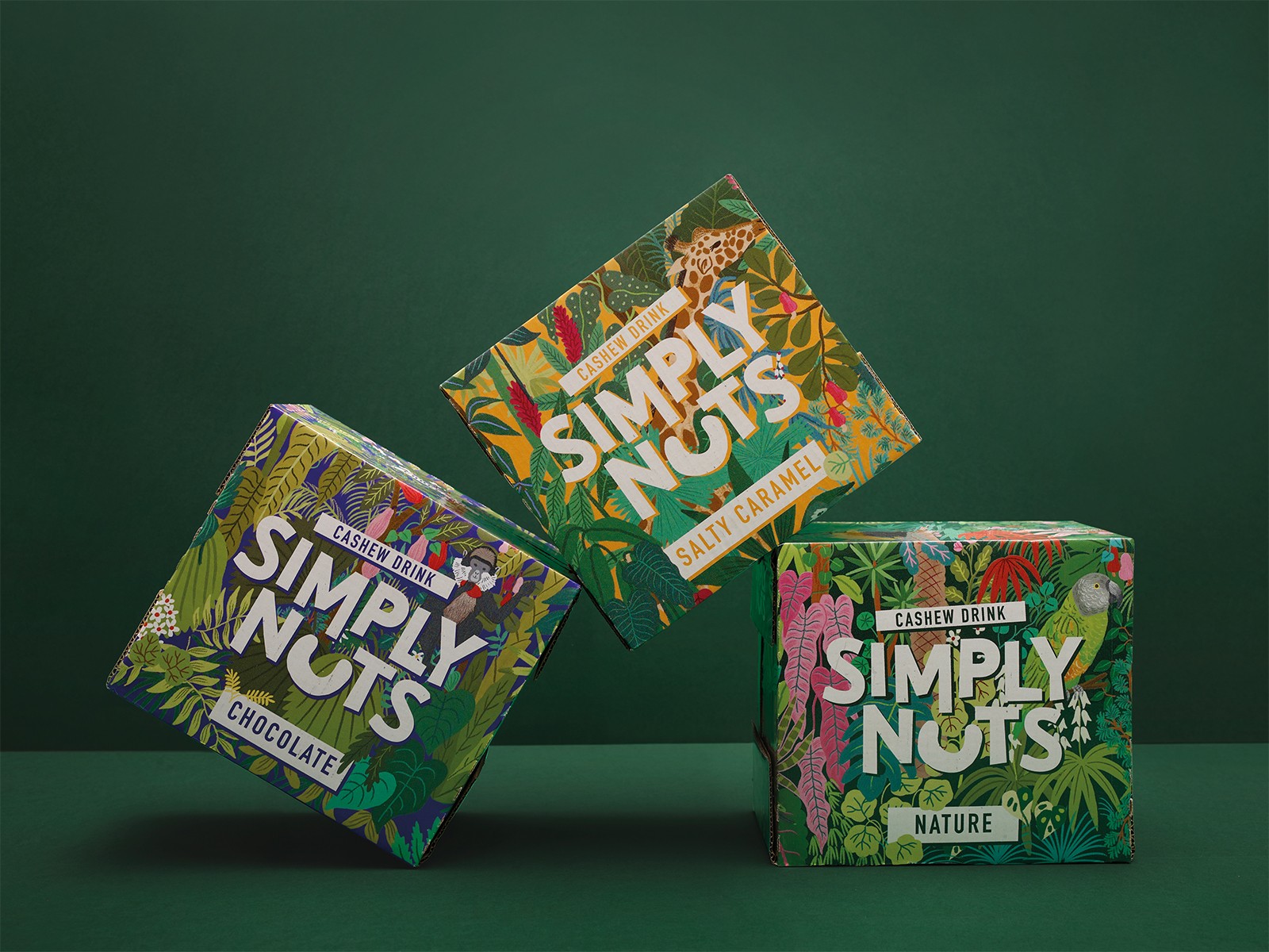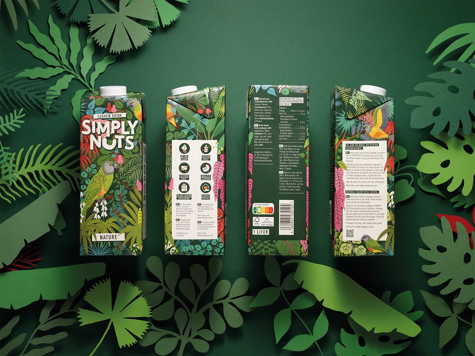 市場上充斥著提供牛奶替代品的品牌。如果一家初創(chuàng)企業(yè)不脫穎而出,它就很難有所作為。 Simply Nuts 是腰果奶品牌,擁有“德國腰果比例最高”。Simply Design 與 Studio Oeding 接洽,“根據(jù)深入的市場和設(shè)計分析,在牛奶替代品領(lǐng)域開發(fā)一個新的消費(fèi)品牌?!?/em>腰果飲料產(chǎn)品系列由三個品種組成,于去年秋季率先在德國快速消費(fèi)品市場推出。包裝設(shè)計應(yīng)將品牌和產(chǎn)品概念形象化,并在市場和立場上形成明顯的差異化出去?!?/em>