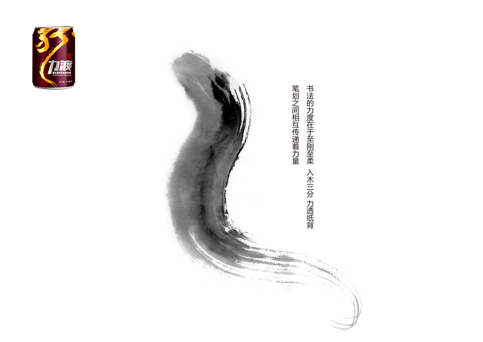 最終結(jié)合客戶需要定制一款中國能量的飲料,選用中國傳統(tǒng)書法的對力度的表現(xiàn),來做主視覺的設(shè)計。
