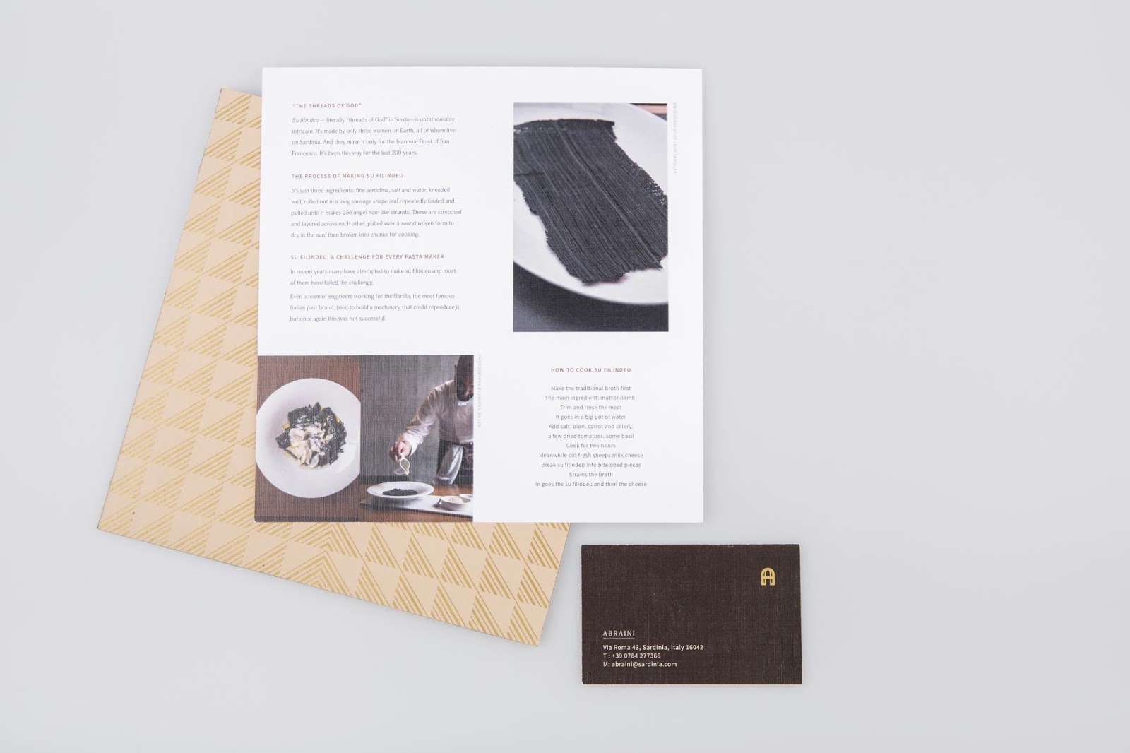 意大利面“蘇菲林杜”,也被稱為“上帝的絲線”,是世界上最稀有的意大利面,很難制作,只有三名婦女在偏遠(yuǎn)的山坡小鎮(zhèn)諾羅,在崎嶇的意大利撒丁島,知道如何做。這個(gè)項(xiàng)目是為了創(chuàng)造一個(gè)豪華包裝這個(gè)特殊的意大利面品牌‘艾布拉尼’。