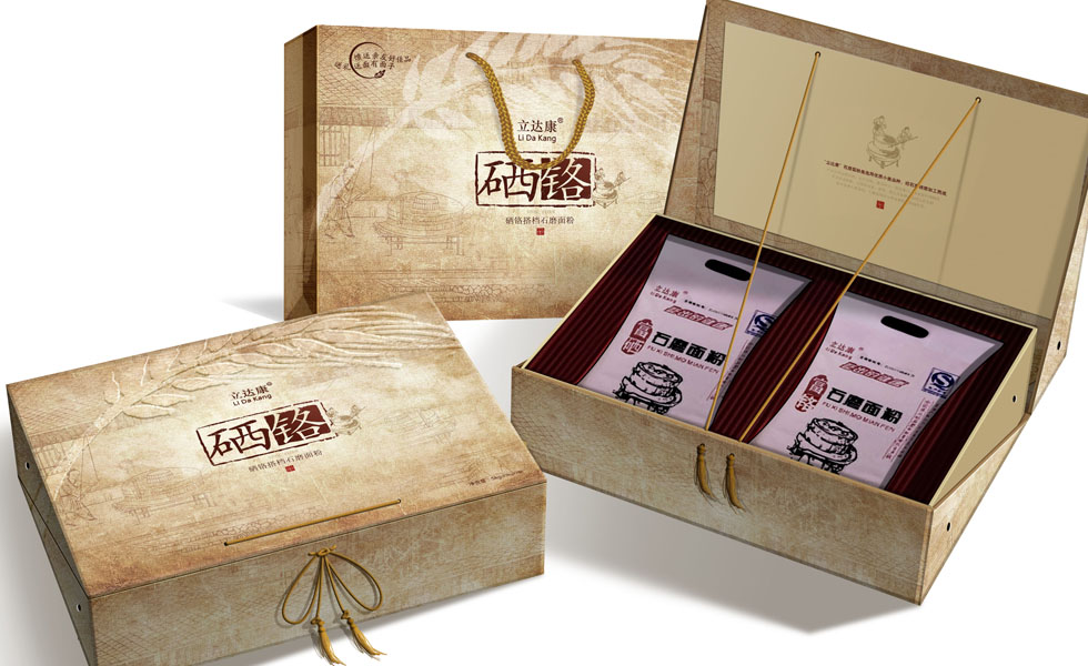 項(xiàng)目背景:立達(dá)康高檔面粉禮盒,將優(yōu)質(zhì)天然富硒面粉高檔化、禮品化,成為走訪親友饋贈佳品。禮盒整理設(shè)計(jì)風(fēng)格樸素自然,主色調(diào)貼近谷物裸色,背景融入磨盤等谷物加工制作形象手繪插畫,更添生動情趣,表現(xiàn)原始自然的風(fēng)采。