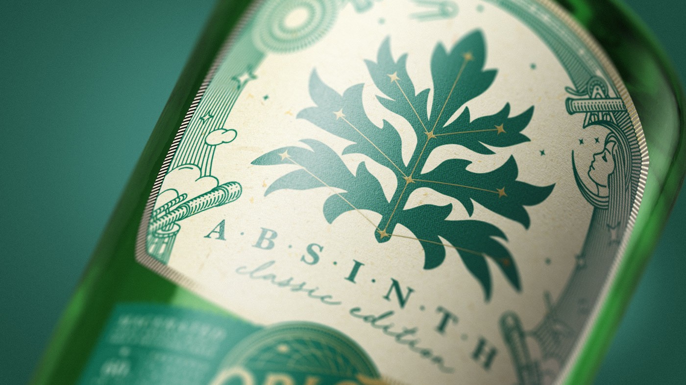 解決辦法。主標簽分為三個部分。第一個創(chuàng)建標簽的心情,第二個包含所有的技術信息并作為版本的顏色標識符工作。最后一個是標志塊,它連接標簽的兩個部分。標簽的主要部分是專門討論產(chǎn)品的主題:一個天文數(shù)字的缺席。在這里,你可以在繁星的天空上找到一個苦艾星座。這個比喻反映了在一個充滿競爭對手的宇宙中發(fā)現(xiàn)了一種新產(chǎn)品。選擇了一種線性風格的插圖,以支持對產(chǎn)品進行天文研究的意義。簡約和極簡主義很好地發(fā)揮了品牌的視覺識別作用。天文鐘Orloj在其結構上有非常具體的細節(jié)。這些細節(jié)已經(jīng)成為標志塊的元素,連接標簽的上下部分。