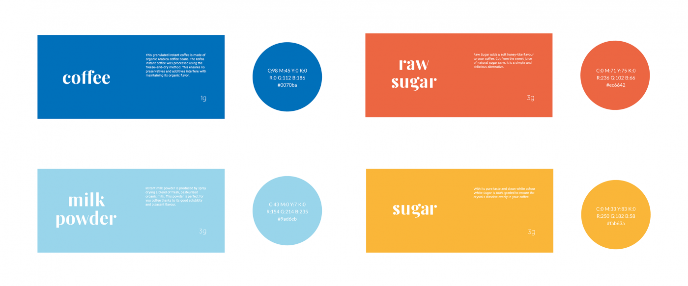 包裝中包含咖啡,白糖,原糖和奶粉,因此可以隨心所欲地對咖啡進(jìn)行調(diào)味。使用非彩色紙板紙制成的外部保護(hù)包裝,Kofea具有很強(qiáng)的手工感。按顏色分開,每個不同的小袋在折紙風(fēng)格的折疊式包裝中都有自己的“部門”。內(nèi)部折痕在印刷圖案上隱藏了漂亮的細(xì)節(jié),而封閉式包裝僅帶有俏皮獨特的襯線徽標(biāo)。