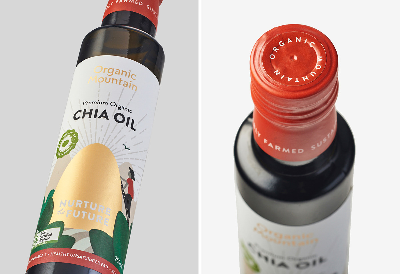 標(biāo)簽:有機(jī)油 Organic Mountain 尊重土地 培育更可持續(xù)的未來 靈感源于祖先 有機(jī)奇亞油包裝設(shè)計(jì) 品牌產(chǎn)品包裝設(shè)計(jì)公司