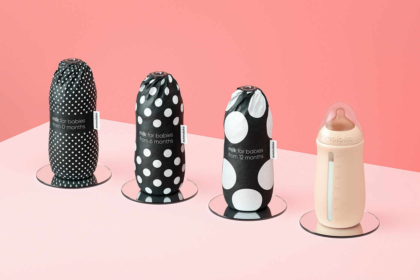 品牌系列包括三種產(chǎn)品。它們的成分不同,適用于不同的年齡:從出生,六個月到一年。該產(chǎn)品的優(yōu)點是可以瓶裝出售,可以重復(fù)使用,有助于改善環(huán)境。該瓶子根據(jù)圖紙設(shè)計。啞光米色表面保護(hù)著瓶子內(nèi)的物品。瓶子有一個刻度尺和一個窗口,通過該窗口可以看到產(chǎn)品。視覺上的想法是,用于喂養(yǎng)的瓶子象征著女性的乳房,而包裝紙則象征著衣物。豌豆圖案被用作基礎(chǔ),是女性衣柜中最知名的圖案。豌豆是產(chǎn)品的另一特性:豌豆的大小取決于嬰兒的年齡。
