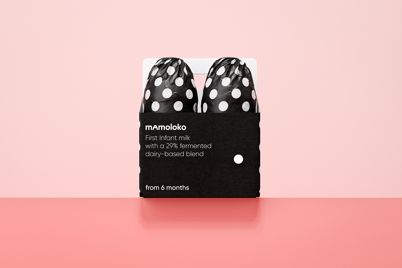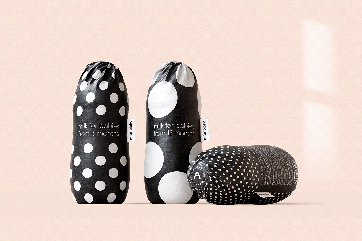 Mamoloko是為年輕現(xiàn)代女性設(shè)計的牛奶配方。該包裝看起來像是時尚的配飾,是年輕母親形象的補(bǔ)充。黑白伽瑪與一頭母牛有關(guān)。這樣的包裝將在貨架上的其他乳制品中脫穎而出,并且,最重要的是,母親們將很高興看到這種產(chǎn)品。