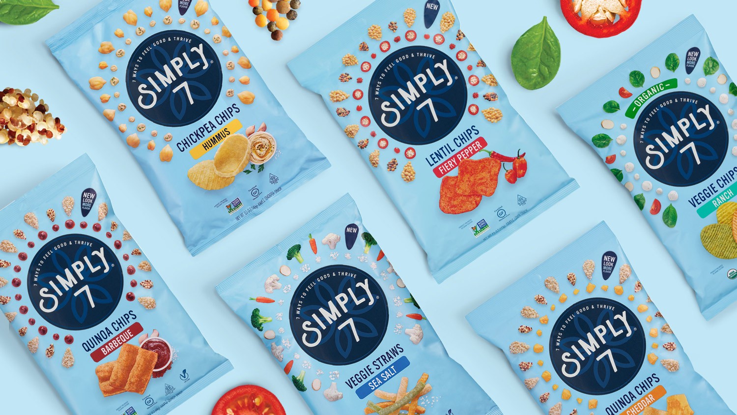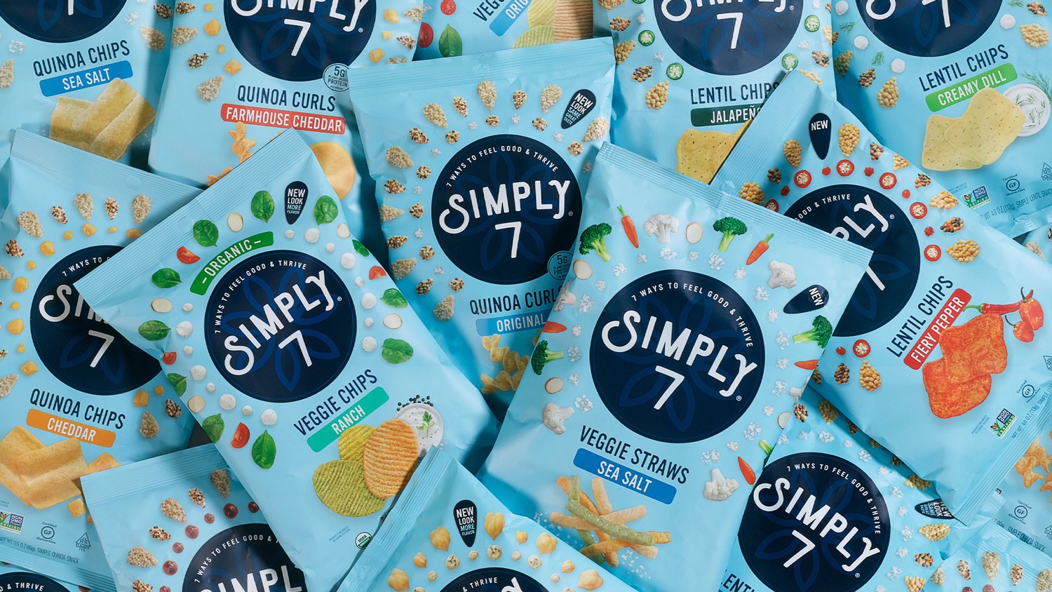 包裝設(shè)計(jì)師將Simply 7品牌從陳腐和不景氣轉(zhuǎn)變?yōu)橐粋€(gè)能讓零售商和消費(fèi)者都興奮不已的賣座品牌。新的標(biāo)識(shí)通過定制攝影來展現(xiàn)產(chǎn)品健康成分,獨(dú)特的品類色彩則在貨架上很流行,bullseye品牌則占據(jù)了中心位置。最后,一個(gè)能讓這些小吃有多么美味的設(shè)計(jì)(相信我們,我們只是癡迷于此)。