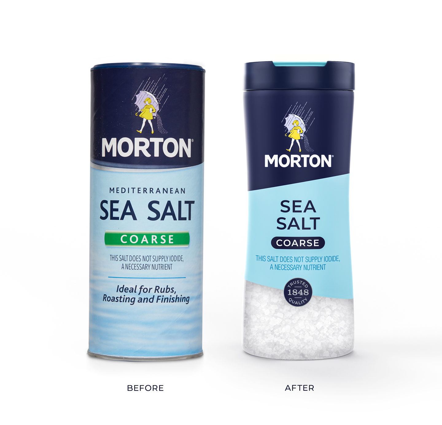 (Morton Salt)最近宣布了十多年來的首次重大包裝設(shè)計(jì)。Coarse Kosher,Coarse Sea Salt和Fine Sea Salt的新包裝為該品牌提供了一種全新的優(yōu)質(zhì)外觀,以吸引消費(fèi)者并推動(dòng)家庭廚師中特種鹽類的增長(zhǎng)。