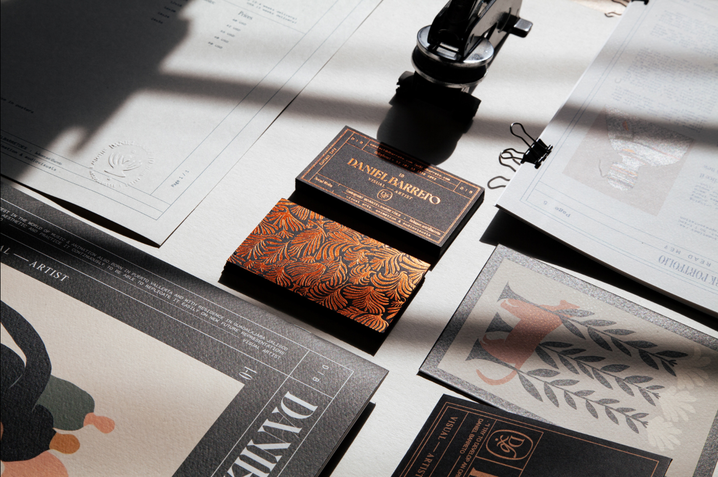 杰出的視聽和圖形藝術(shù)家Daniel Barreto的企業(yè)標(biāo)識(shí)項(xiàng)目。我們的主要目標(biāo)是創(chuàng)建一個(gè)企業(yè)形象項(xiàng)目,以視覺方式反映Daniel的視聽作品,并創(chuàng)建一個(gè)會(huì)標(biāo)作為日本郵票(作為日本圖形藝術(shù)家用來為其作品加蓋郵票)和徽標(biāo),以反映實(shí)力,獨(dú)特性和活力,以統(tǒng)一的方式整合圖形作品和機(jī)構(gòu)文具的元素
